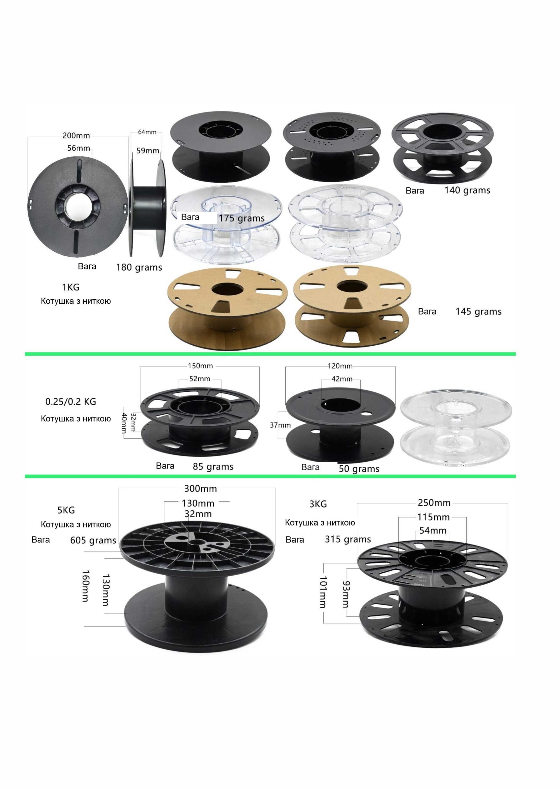 Наші катушки для 3D-принтерів та інших пристроїв мають чітко вказані характеристики, такі як ширина нитки, діаметр, вага та тип матеріалу. Це дозволяє вибрати найкращий варіант для вашого проекту, забезпечуючи точний і високоякісний друк.